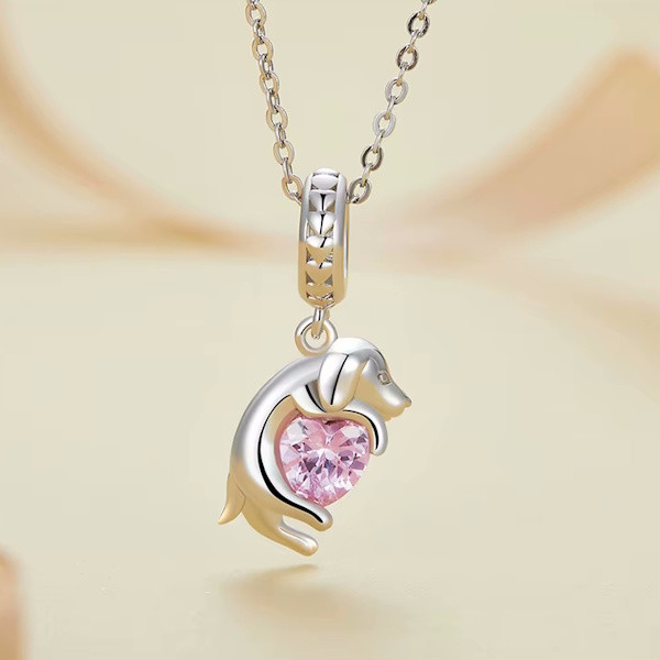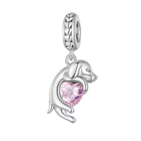 Ez az 925 sterling ezüst charm tökéletes választás a kutyabarátok számára, akik szeretnék kifejezni ragaszkodásukat kedvencük iránt. A szívvel díszített charm finoman csillog a beágyazott cirkóniumkristályoknak köszönhetően, így minden ékszerhez egyedi és elegáns megjelenést kölcsönöz.
