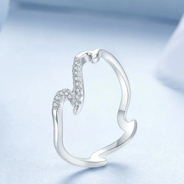 Dámsky prsteň vyrobený zo striebra, zdobený bielym zirkónovým kryštálom. Jeho šírka je 0,28 cm, hmotnosť 1,1 g.