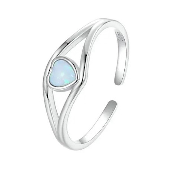 Dámsky prsteň vyrobený zo striebra, zdobený opálom, nastaviteľná veľkosť. Jeho šírka je 0,15 cm, hmotnosť 1,5 g.