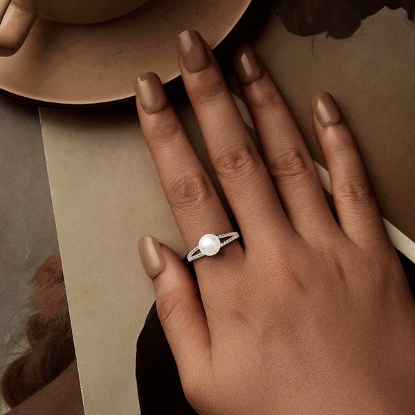 Ezt az ékszert egy prémium minőségű kagylógyöngy (shell pearl) díszíti. Készítése során a valódi tengeri kagylóhéjat finom porrá őrlik, gondosan megformázzák, majd egy elegáns, gyöngyházfényű lakkréteggel vonják be. Ez az eljárás garantálja a tökéletes formát és a hosszan tartó, lenyűgöző csillogást, amely a valódi igazgyöngyök szépségét idézi.