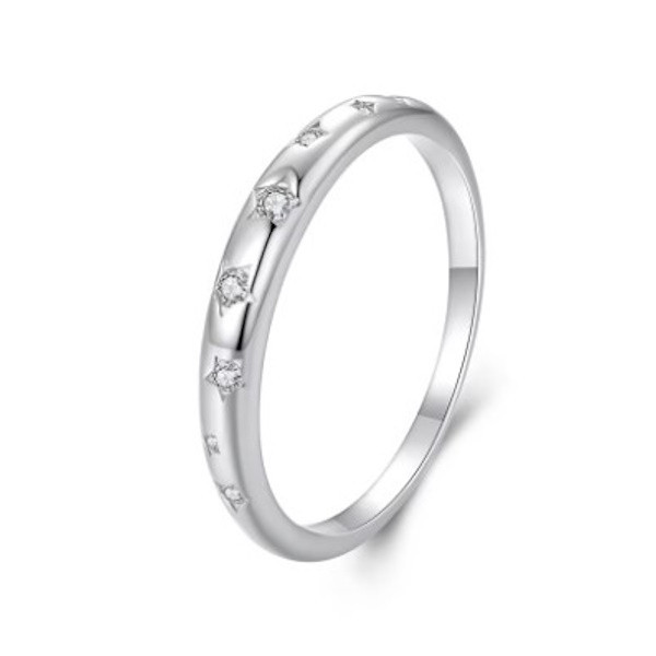Dámsky prsteň vyrobený zo striebra, zdobený bielym zirkónovým kryštálom. Jeho šírka je 0,2 cm, hmotnosť 1,5 g.