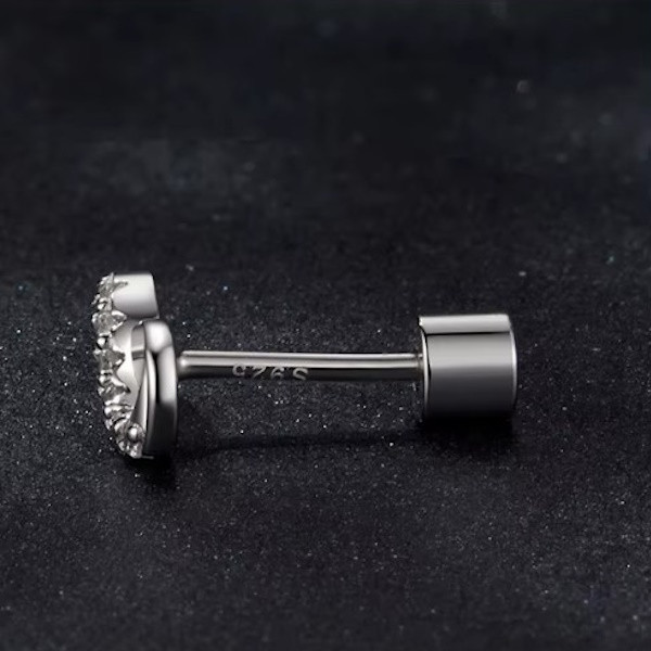 Dámske náušnice vyrobené zo striebra, zdobené moissanitovým kryštálom. Veľkosť 0,4 × 0,8 cm, váha 0,9 g.
