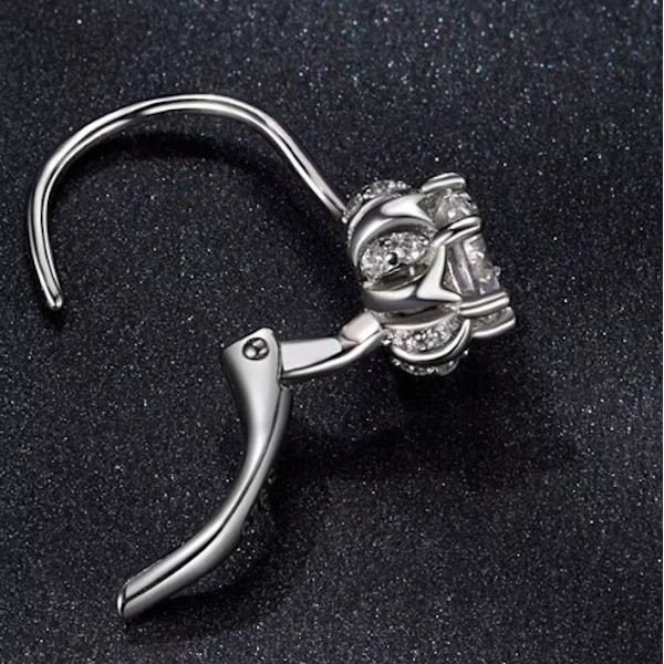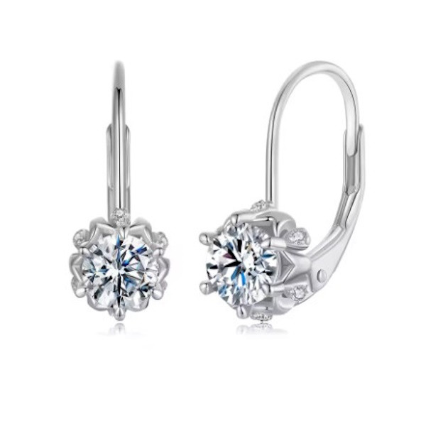 Dámske náušnice vyrobené zo striebra, zdobené kryštálmi zirkónu a moissanitu. Veľkosť 1,8 × 0,6 cm, váha 1,8 g.