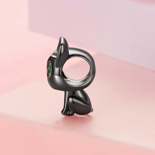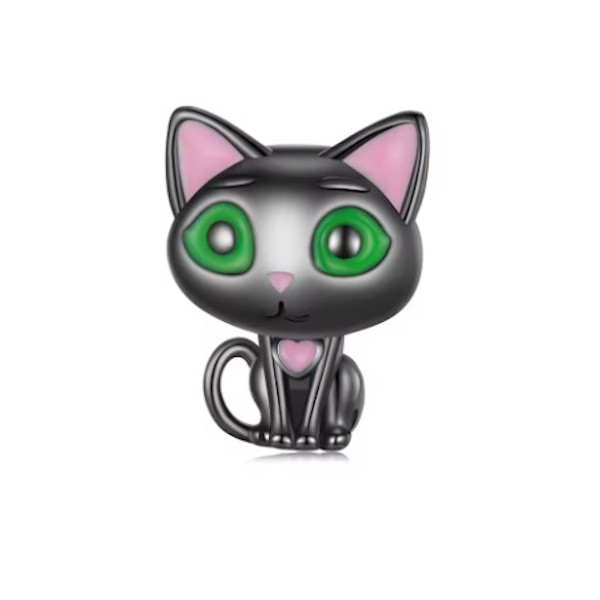 Vyrobené zo striebra, zdobené čiernym zlatom a farebným smaltom, na prívesný náramok a náhrdelník. Veľkosť 1,2 × 0,9 cm, váha 1,7 g. Priemer otvoru je 0,45 cm.