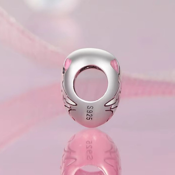 Vyrobené zo striebra, zdobené farebným smaltom, na kúzelné náramky a náhrdelníky. Veľkosť 1,1 × 1,1 cm, váha 1,8 g. Priemer otvoru je 0,45 cm.