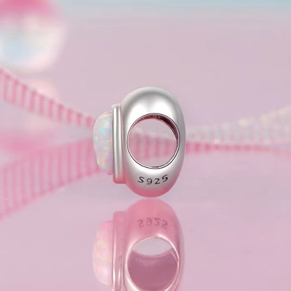 Vyrobené zo striebra, zdobené opálovým kameňom, na náramku a náhrdelníku. Veľkosť 1,0 × 1,0 cm, váha 1,4 g. Priemer otvoru je 0,45 cm.