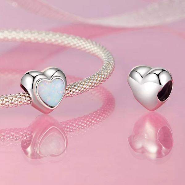 Strieborné kúzlo, srdce s opálom