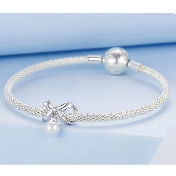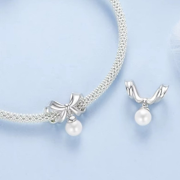 Vyrobené zo striebra, zdobené bielym zlatom a pravými perlami, na prívesný náramok a náhrdelník. Veľkosť 1,4 × 1,4 cm, váha 1,1 g. Priemer otvoru je 0,45 cm.