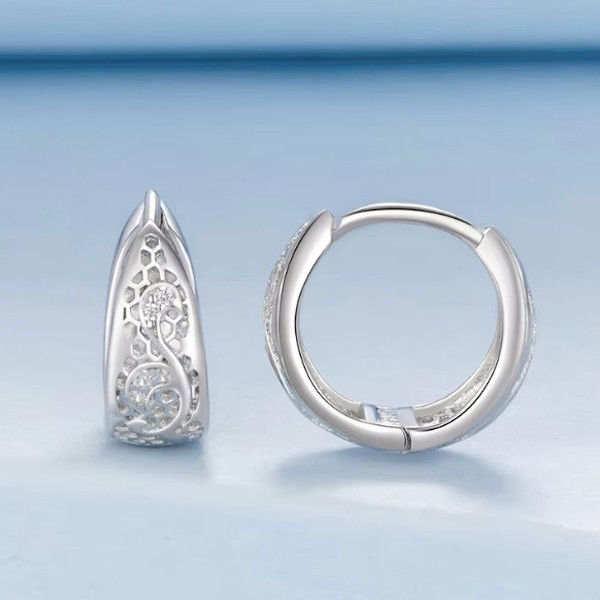 Ez a 925 sterling ezüstből készült fülbevaló tökéletes eleganciát sugall minden alkalomra. A finom fehérarany-bevonat még inkább kiemeli az áttört mintázatot, mely modern és időtlen stílust kölcsönöz. A fülbevaló kör alakú dizájnja klasszikus megjelenést biztosít, amely bármilyen ruhaköltemény tökéletes kiegészítője lehet.