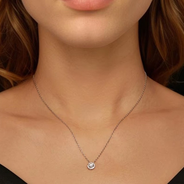 Ez a lenyűgöző nyaklánc a kifinomult elegancia megtestesítője, amely egy 925 sterling ezüst láncra fűzött moissanitkristállyal díszített medált rejt magában. A fehéraranyréteggel bevont lánc hossza 40+5 cm, így tökéletesen illeszkedik minden nyakhoz, miközben a mindössze 2.1 grammos súlya könnyed viseletet biztosít. A medál 0.7×0.5 cm-es mérete diszkrét, mégis feltűnő csillogást kölcsönöz. A moissanite egy gyémántszerű ragyogással bíró, laboratóriumban előállított drágakő, amely nemcsak etikus és környezetbarát választás, de rendkívül tartós is. Tökéletes ajándék lehet szeretteidnek, hiszen különleges minőségét a GRA tanúsítvány is igazolja. Ajándékozáskor a moissanite tiszta fényével és elegáns megjelenésével garantáltan elvarázsolod a szerencsés viselőjét. Válaszd ezt a nyakláncot, hogy emlékezetes és stílusos ajándékot adhass!