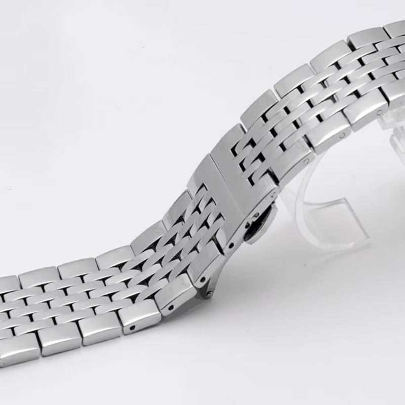 A dupla nyomógombos pillangócsat biztonságos záródást garantál, miközben gyors és kényelmes fel- és levételt tesz lehetővé. Az állítható kialakításnak köszönhetően az óraszíj könnyen személyre szabható, így hosszú távon is komfortos marad. Ez a típus ideális választás azok számára, akik tartós, időtálló és esztétikus megoldást keresnek órájuk megjelenésének megújításához, kompromisszumok nélkül.