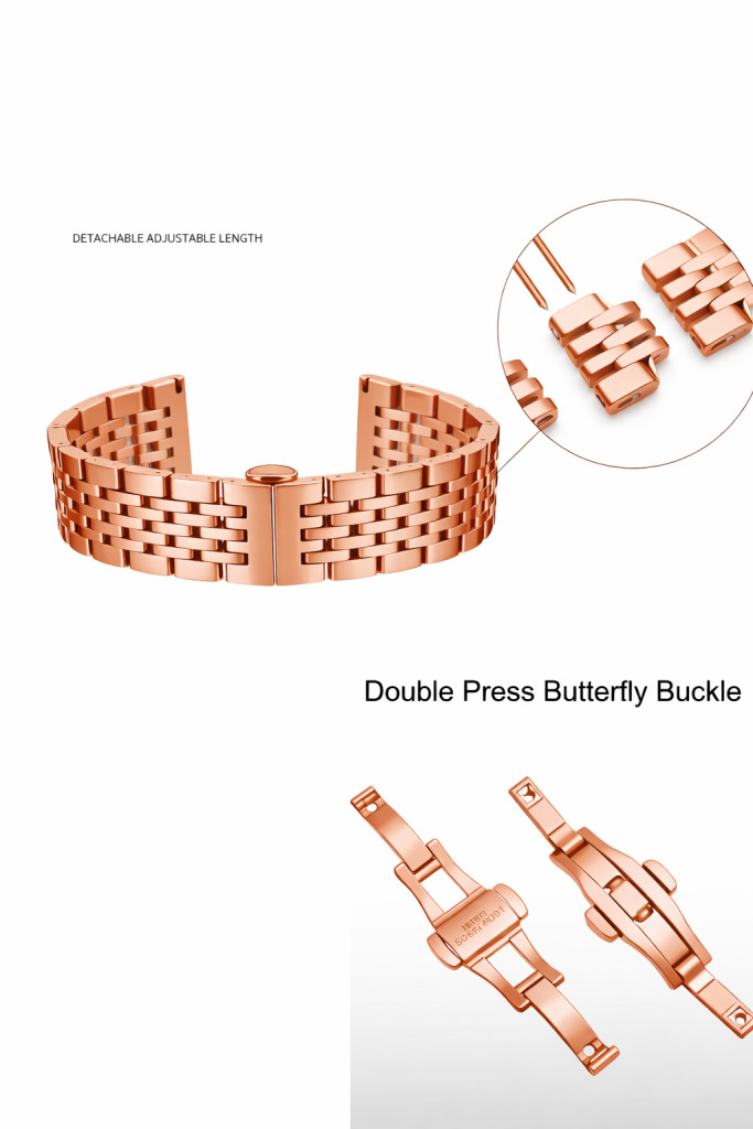 A dupla nyomógombos pillangócsat biztonságos záródást garantál, miközben gyors és kényelmes fel- és levételt tesz lehetővé. Az állítható kialakításnak köszönhetően az óraszíj könnyen személyre szabható, így hosszú távon is komfortos marad. Ez a típus ideális választás azok számára, akik tartós, időtálló és esztétikus megoldást keresnek órájuk megjelenésének megújításához, kompromisszumok nélkül.
