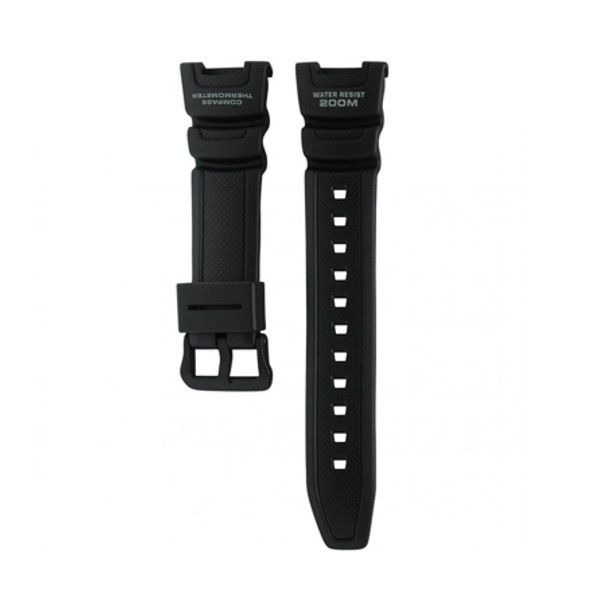 Čierny plastový remienok na hodinky CASIO Bands 10304195. Jeho šírka je 24 mm.