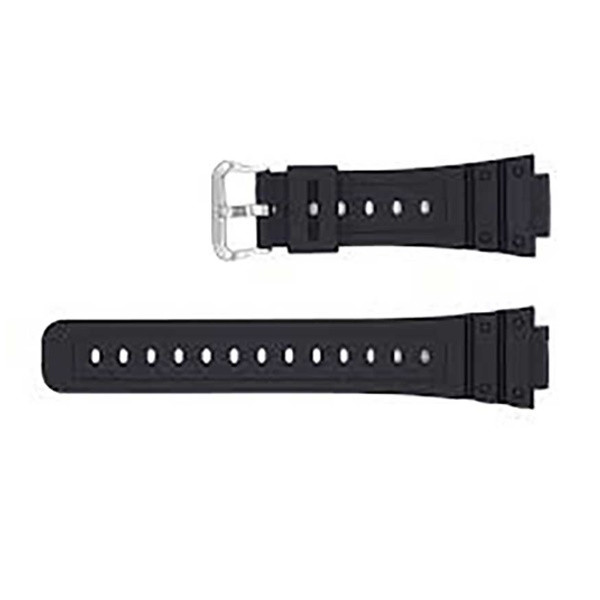 Čierny plastový remienok na hodinky CASIO Bands 10512401. Jeho šírka je 26 mm.