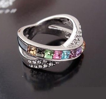 Krížový prsteň, Multicolor, zdobený kryštálom Swarovski, 6.5
