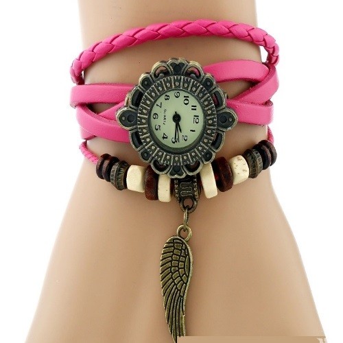 Dámske kožené hodinky s anjelskými krídelkami, ružové
