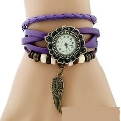 Kožený dámsky náramok hodiniek Angel wings, fialová