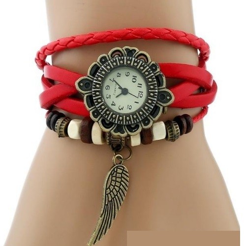 Kožené dámske náramkové hodinky Angel wings, červené