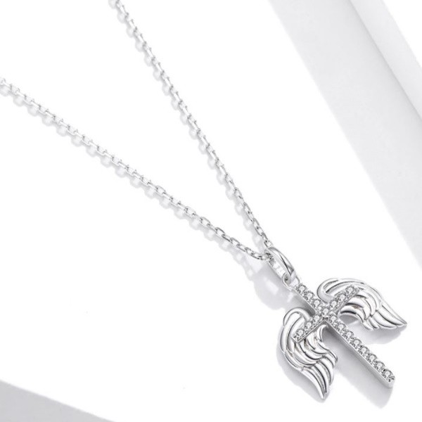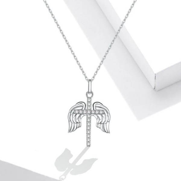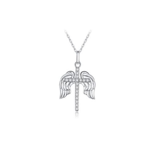 Strieborný náhrdelník s okrídleným krížikom