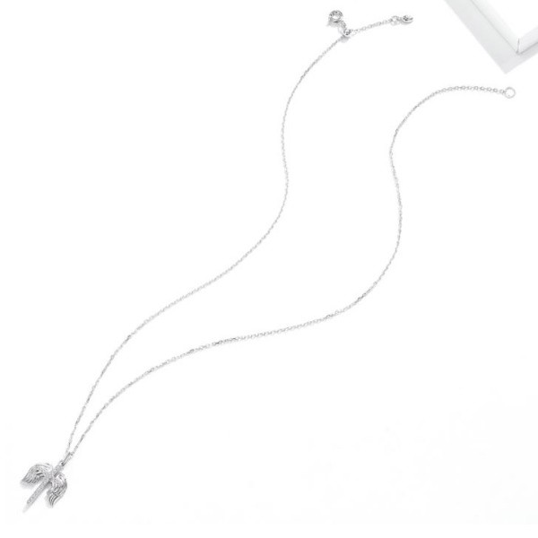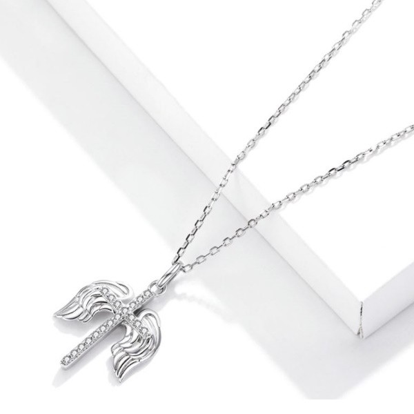Náhrdelník zo striebra s príveskom zobrazujúcim okrídlený kríž zdobený kryštálmi zirkónu. Dĺžka retiazky je 45 cm, veľkosť prívesku je 1,9 x 1,4 cm. Hmotnosť 2,5 g.