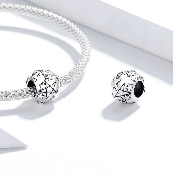 Vyrobené zo striebra, zdobené hviezdičkami, na náramku a náhrdelníku. Prívesok je kompatibilný s náramkami typu Pandora a Pandora.