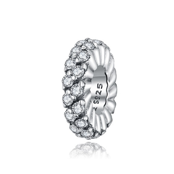 Vyrobené zo striebra, zdobené bielym zirkónovým kryštálom, na ozdobný náramok a náhrdelník. Veľkosť 1 x 0,25 cm Prívesok je kompatibilný s náramkami typu Pandora a Pandora.