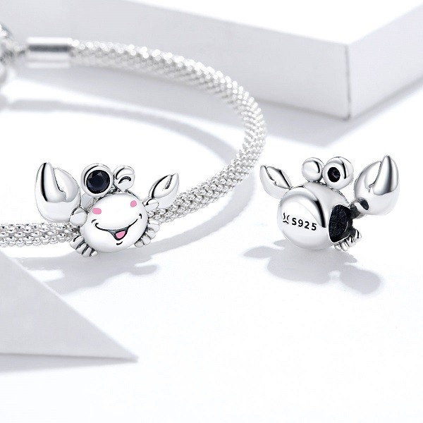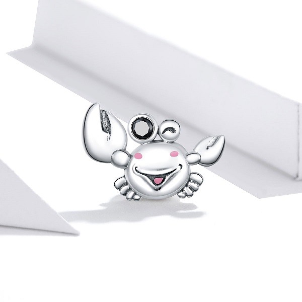 Prívesok s vyobrazením kraba vyrobený zo striebra, zdobený zirkónovým kryštálom. Dá sa nosiť na náramku alebo náhrdelníku. Veľkosť 1,1 x 1,8 cm Prívesok je kompatibilný s náramkami typu Pandora a Pandora.