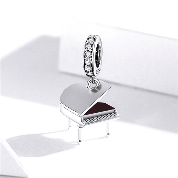 Šarmantný náramok zo striebra, zdobený bielym zirkónovým kryštálom s vyobrazením klavíra, na náhrdelníku. Veľkosť 2,2 x 1,1 cm. Prívesok je kompatibilný s náramkami typu Pandora a Pandora.