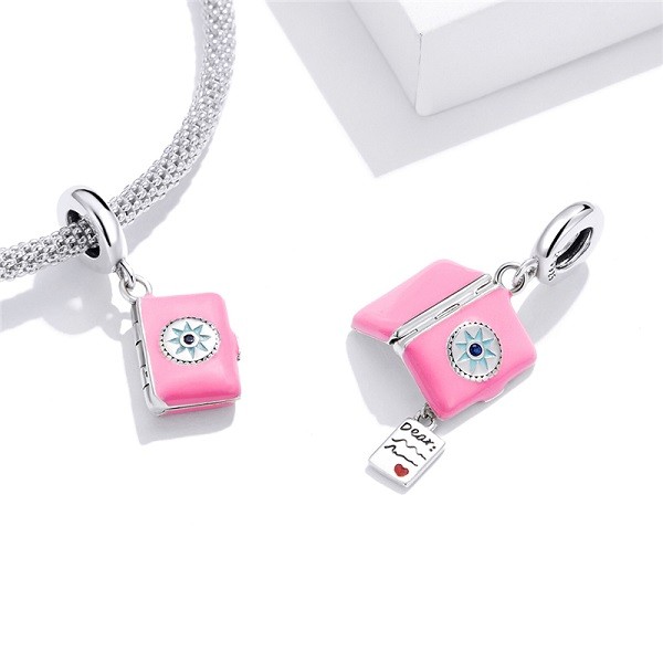 Prívesok vyrobený zo striebra, zobrazujúci ružový denník, na náramky a náhrdelníky. Veľkosť 0,9 x 3,2 cm Prívesok je kompatibilný s náramkami typu Pandora a Pandora.