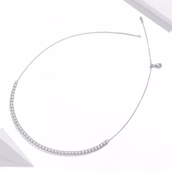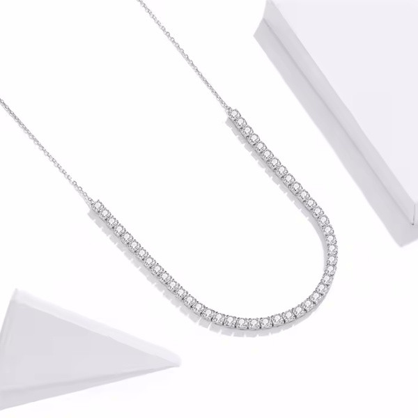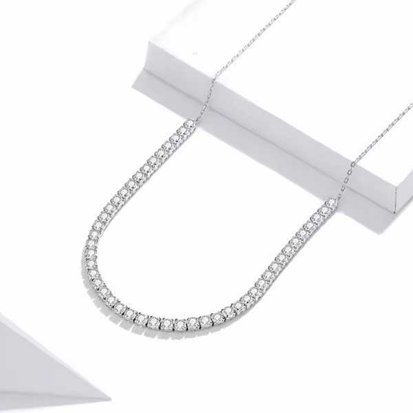 Ez az elegáns nyaklánc tökéletes választás mindennapi viselethez és különleges alkalmakra egyaránt. A 925 sterling ezüstből készült, platinabevonattal ellátott ékszer ragyogó cirkóniumkristállyal díszítve igazán lenyűgöző megjelenést kölcsönöz viselőjének. A cirkóniumkristály csillogó fénye a szépség és a tisztaság szimbóluma, amely minden tekintetet magára vonz. Ez az ezüst nyaklánc nemcsak önmagad számára lehet kedves kiegészítő, hanem tökéletes ajándék is szeretteid számára, hiszen az ajándékozás örömét és a gondoskodás kifejezését is magában hordozza. Az ékszer könnyed eleganciája és időtálló stílusa bármilyen ruhadarabbal harmonizál, így sosem fogsz hibázni vele. Lepd meg magad vagy egy kedves ismerősöd ezzel a csodálatos ékszerrel, és élvezd a finom ragyogást, amit a nyaklánc nyújt!