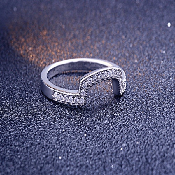 Módny dámsky prsteň vyrobený zo striebra, pozostávajúci z dvoch kusov, zdobený zirkónovým kryštálom. Váži 6 g.
