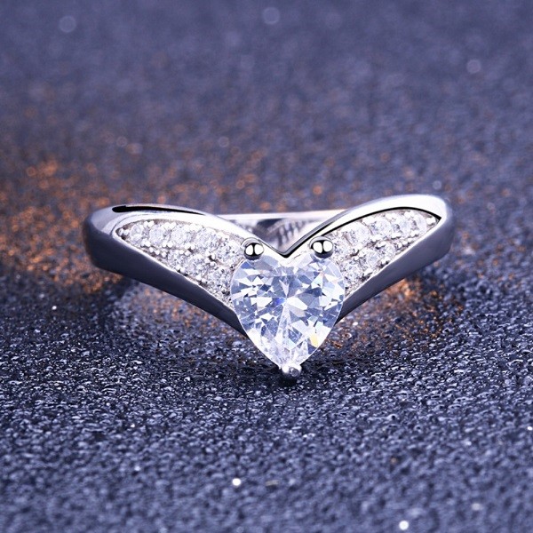 Elegantný dámsky prsteň v tvare srdca vyrobený zo striebra, zdobený bielym kryštálom zirkónu.