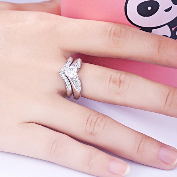 Elegantný dámsky prsteň v tvare srdca vyrobený zo striebra, zdobený bielym kryštálom zirkónu.