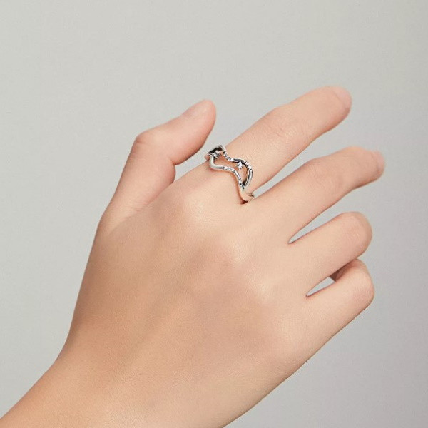 Strieborný dámsky prsteň, abstraktný