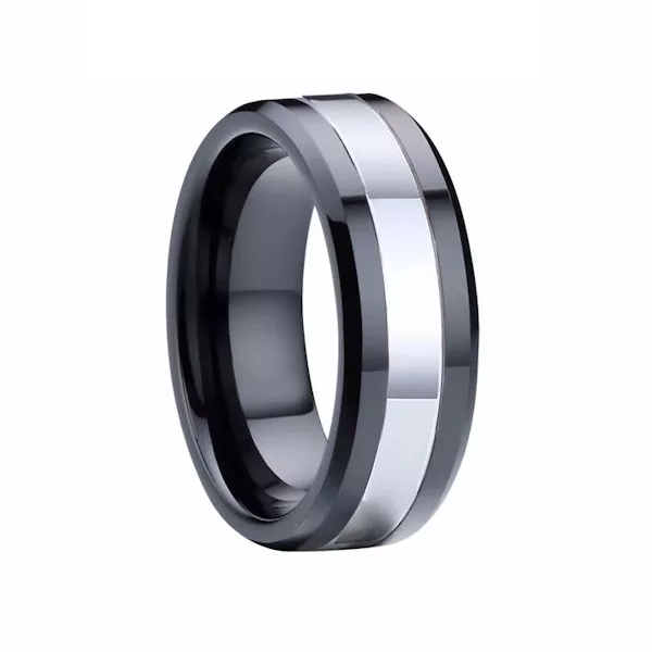 Ez az elegáns férfi karikagyűrű nemesacélból készült, amely garantálja a hosszú távú tartósságot és ellenállóságot. Az ezüst-fekete kombinációja modern és stílusos megjelenést kölcsönöz, amely bármilyen öltözethez tökéletesen illik. A gyűrű szélessége kb. 6 mm, ami kényelmes viseletet biztosít a mindennapokban is.