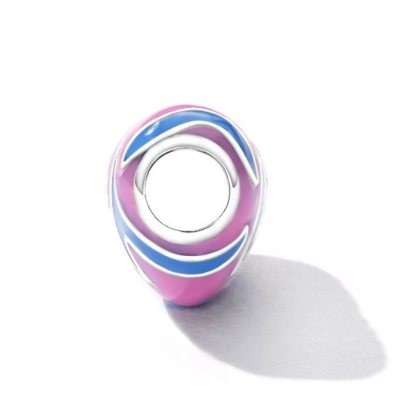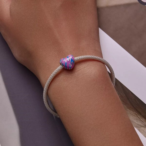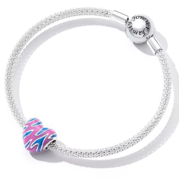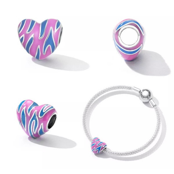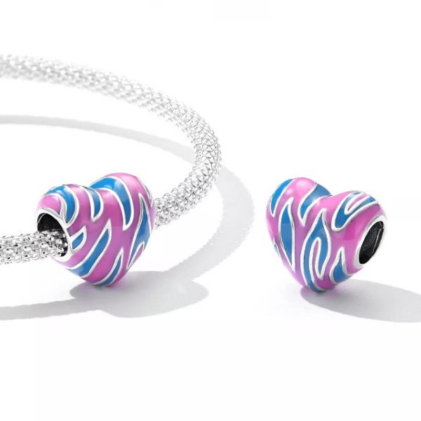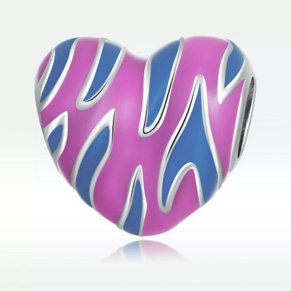 Srdiečkové kúzlo zo striebra, zdobené farebným smaltom, na náramky a náhrdelníky. Jeho rozmer je 1,1 × 1,2 cm, priemer otvoru je 0,45 cm.