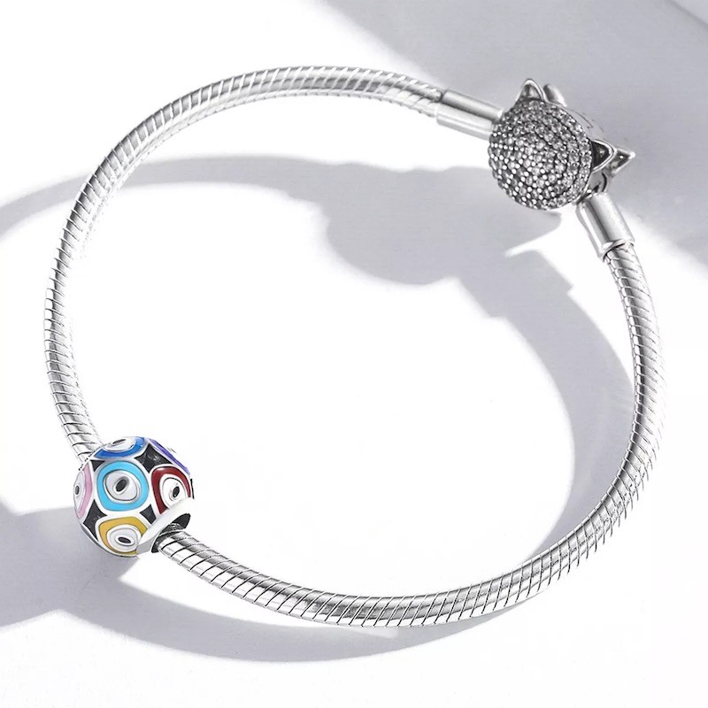 Prívesok z jemného striebra 925, farebné démonické oko, guľovitý tvar.
