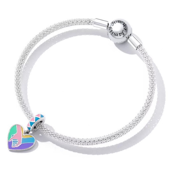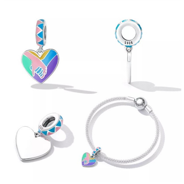 Vyrobené zo striebra, zdobené farebným smaltom, na kúzelné náramky a náhrdelníky. Jeho rozmer je 2,0 × 1,2 cm, priemer otvoru je 0,45 cm.