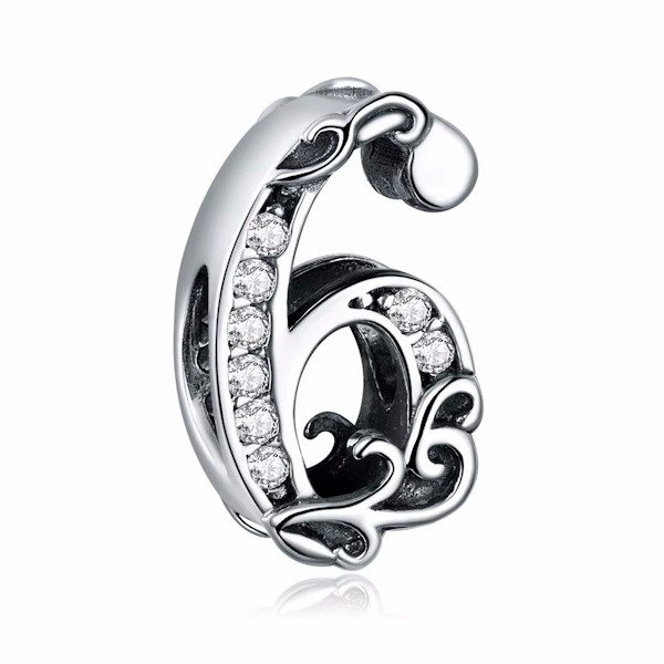 Ez a gyönyörűen kidolgozott, 925 sterling ezüstből készült 6-os számú charm tökéletes választás, ha különlegessé szeretnéd tenni az ékszergyűjteményed. Elegáns és letisztult dizájnjával bármely karkötőn vagy nyakláncon stílusos kiegészítőként tündököl.