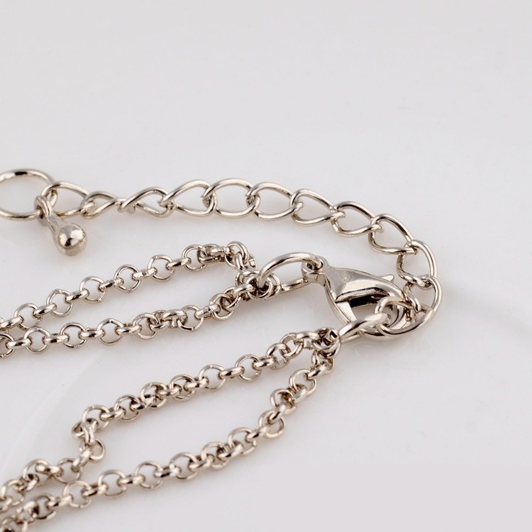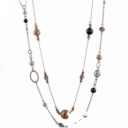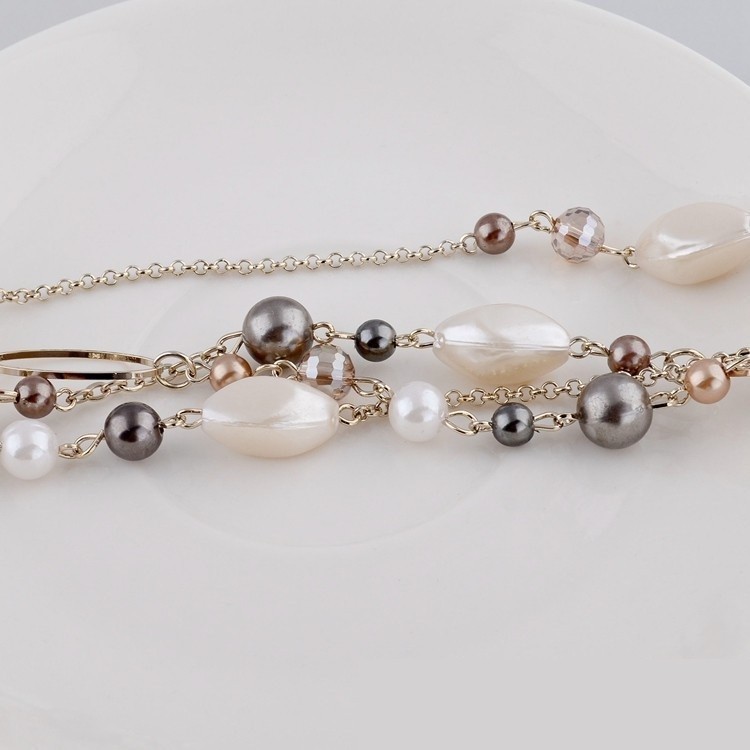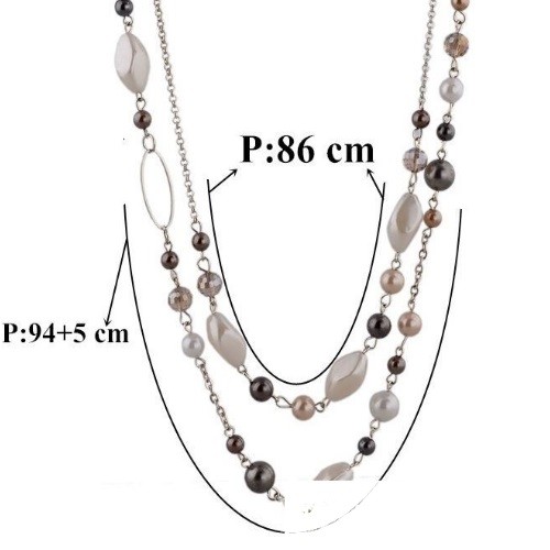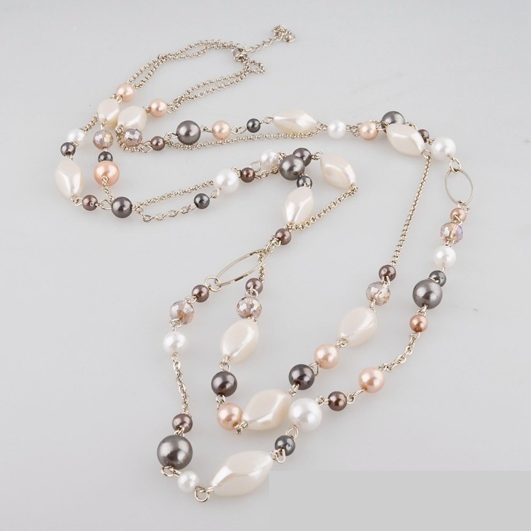 Dlhý náhrdelník zdobený perličkami, striebornej farby