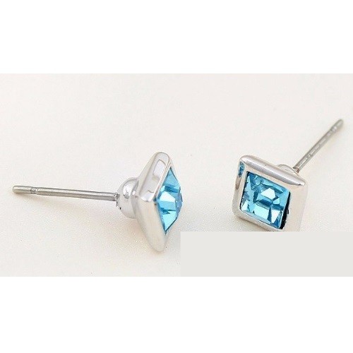 Náušnice Kockka, Aquamarine, zdobené kryštálmi Swarovski