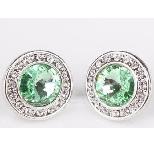 Okrúhle kamienkové náušnice, chryzolit, zdobené kryštálmi Swarovski