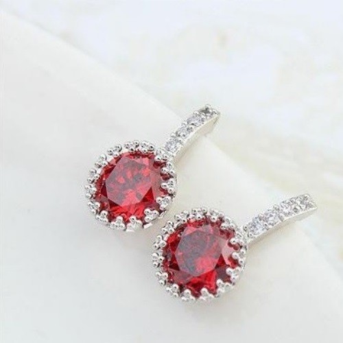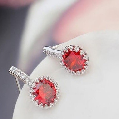 Okrúhle, rhodiované náušnice so zirkónovými kamienkami.