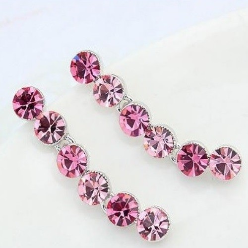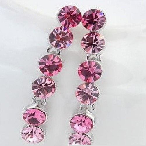Dlhé, okrúhle kamienkové náušnice, ružové