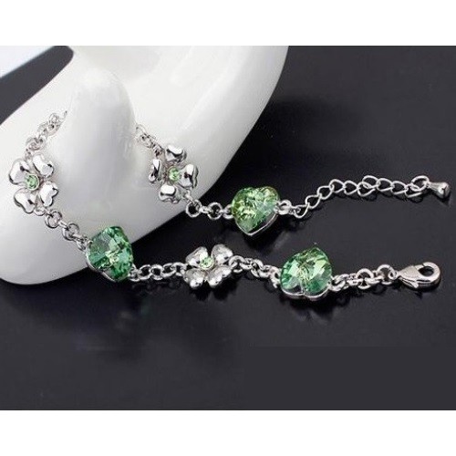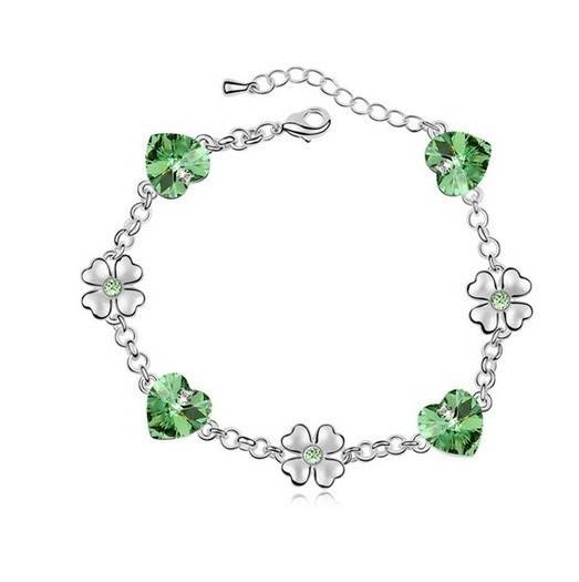 Trendový štýl, rhodiovaný ďatelinový a srdiečkový náramok s kryštálmi Swarovski.