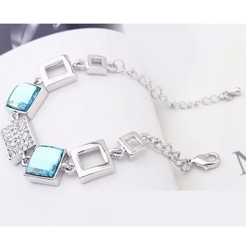 Štvorcový náramok, Aquamarine, zdobený kryštálmi Swarovski