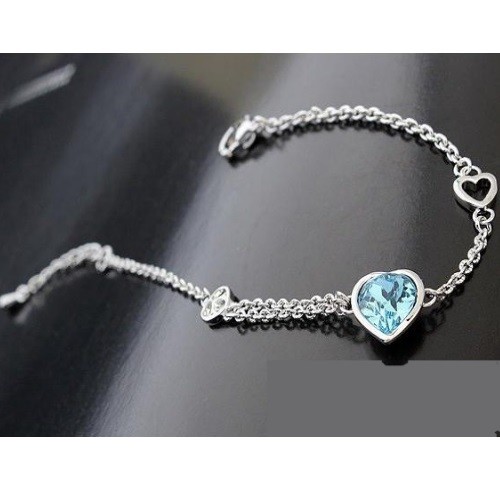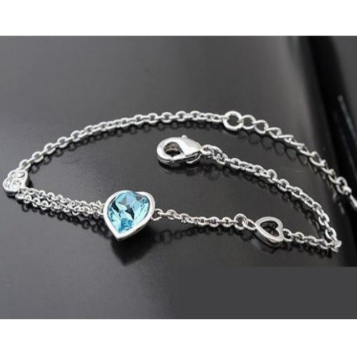 Náramok s príveskom srdiečko, Aquamarine, zdobený kryštálmi Swarovski