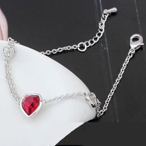 Náramok s príveskom srdiečko, Siam, zdobený kryštálmi Swarovski