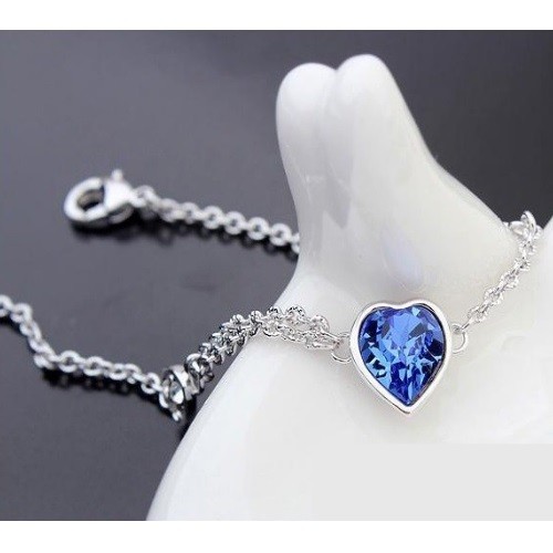 Náramok s príveskom srdiečko, zafír, zdobený kryštálmi Swarovski