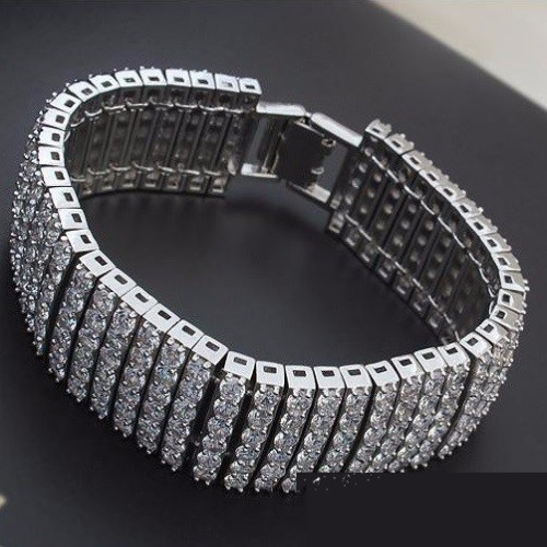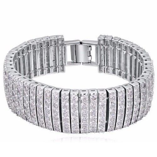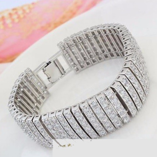 Elegantný rhodiovaný náramok posiaty zirkónovými kamienkami.